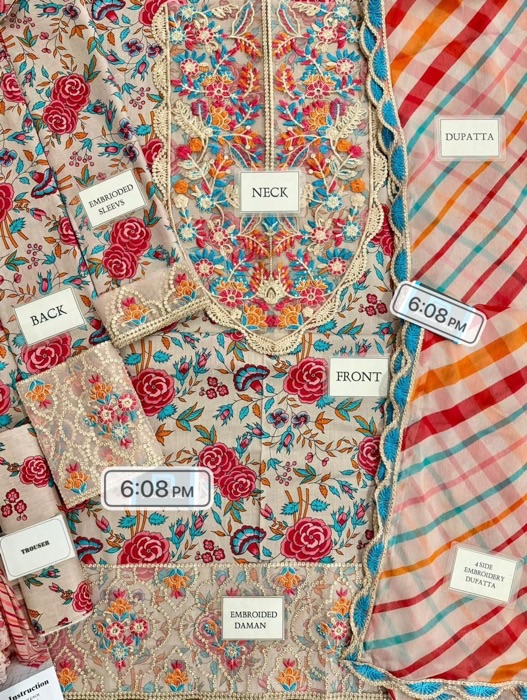 Aneelas AN-739 printed lawn suit with spangle embroidery and chiffon dupatta