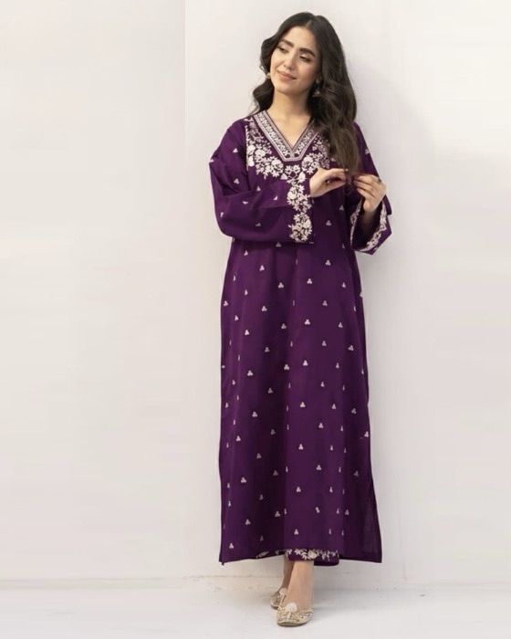 The plain lawn back provides a minimal contrast to the embroidered front, ensuring the outfit remains light and suitable for daily wear.
