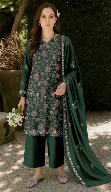 Step into luxury this winter with the Bareeze BR-635 3 Piece Dhanak Winter Suit. Designed with rich Dhanak fabric and stunning embroidery details, this suit is part of Bareeze’s premium winter collection. Perfect for festive gatherings and seasonal celebrations, the BR-635 combines elegance, warmth, and timeless fashion.
