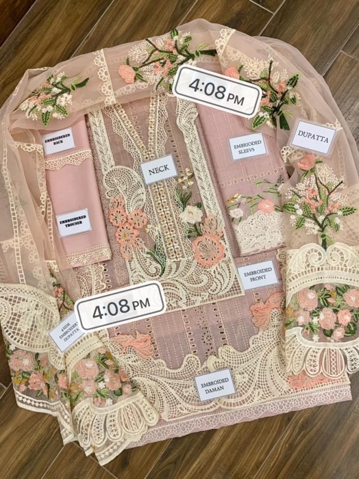 The plain lawn back ensures comfort, while the heavy embroidered back daman border maintains elegance and consistency in design.