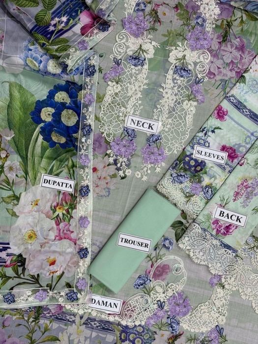 Elaf EF-796 Luxury Lawn Embroidered 3 Piece Suit with Silk Dupatta