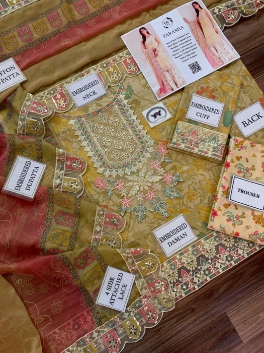 The Farasha FR-822 suit comes in an unstitched format, allowing you to design it as per your preference. Whether you like a straight shirt, frock, or modern cut, this suit gives you full flexibility.