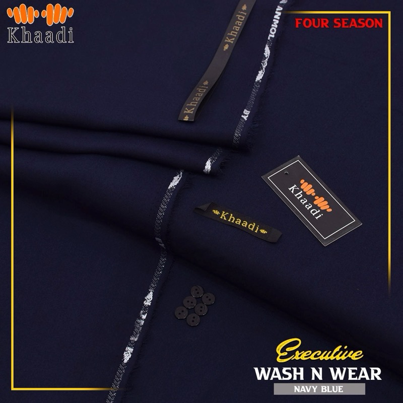 KHAADI MEN NAVY BLUE UNSTITCHED SUIT | SUMMER WEAR 2026