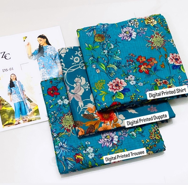 Includes a high-definition printed shirt, matching trousers, and a soft dupatta perfect for warm weather.