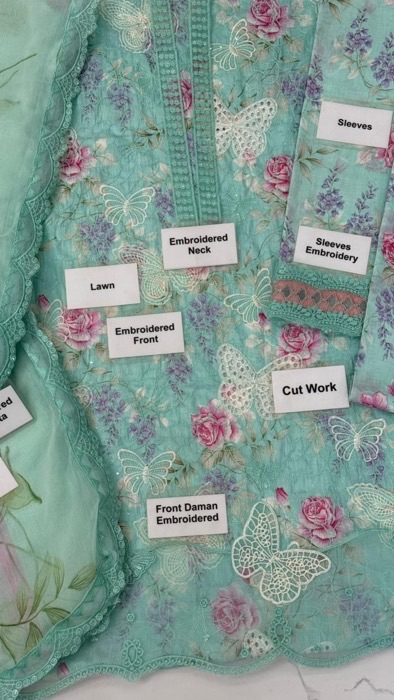 Made with high-quality lawn and chiffon fabric, this suit offers comfort, breathability, and elegance, making it ideal for both casual and semi-formal occasions.
