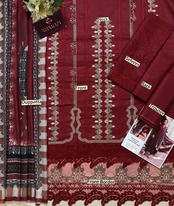 The neckline is beautifully crafted with heavy embroidery directly on fabric, creating a refined and designer-inspired appearance.