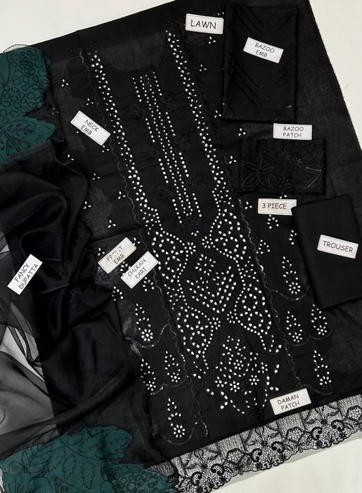 Rang Rasiya IA-72 luxury lawn 3 piece ladies suit with heavy chikankari embroidery and cotton net cutwork dupatta.